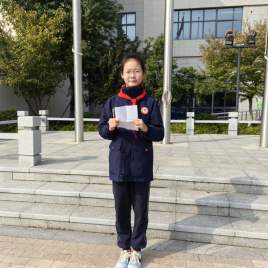 六年级(4)班的宫瑜同学,她性格开朗、积极向上且乐于助人,爱好阅读、运动,积极参与学校活动。作为本周升旗手,她怀着激动自豪的心情发言,表达了亲手升起五星红旗的荣誉感,阐述了升旗仪式的庄严意义以及升旗手称号背后的责任与认可。她还号召新时代少年在课堂上认真学习、课后积极思考,参与各类活动全面发展,珍惜时间规划学习,与同学们携手追梦、共同成长。最后,她以本次升旗仪式为新起点,呼吁大家怀揣梦想、脚踏实地,成为新时代追梦人,为祖国贡献力量,并祝愿祖国繁荣昌盛、老师工作顺利、同学学业有成且快乐成长。