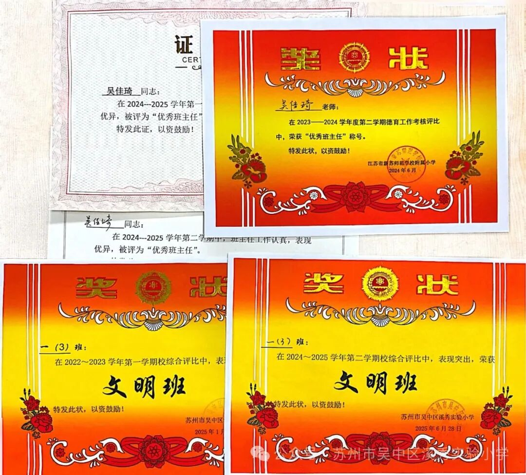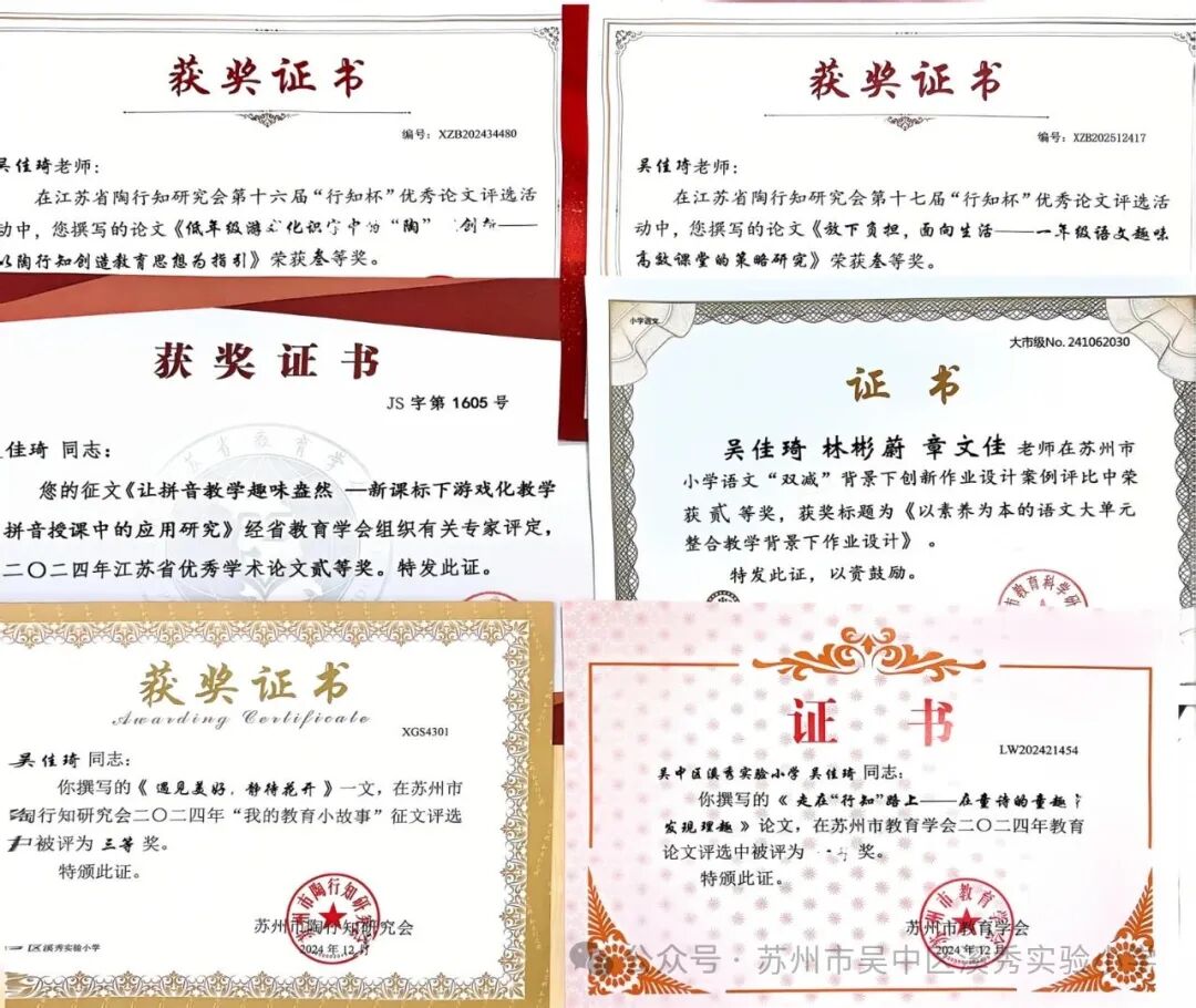 自踏上三尺讲台,吴佳琦老师便将教育视作一方希望的田野,以初心为种,以坚守为肥,坚信耕耘不辍,方能收获春之繁华与秋之硕果。在语文教学的天地里,她始终将自我提升作为职业成长的核心密码,在教学实践中不断沉淀思考。坚持撰写论文与案例,不断地在持续学习和探索中提升自己,获得了一些荣誉。作为班主任,她始终秉持“在探索中求知,在陪伴中成长”的教育理念,精心培育学生的品格。每节课下课,她都会走进班级,陪伴学生。用满满的耐心与爱心守护着班级的每一个孩子,让他们在知识的滋养与温暖的陪伴中稳步成长。以爱育人、沁润童心。她将追逐着光阴的翅膀,寻梦而行,一路追光,继续在平凡的教育之路上书写永恒的教育诗篇。