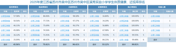2025年度江苏省苏州市吴中区溪秀实验小学学生体质健康数据总体情况