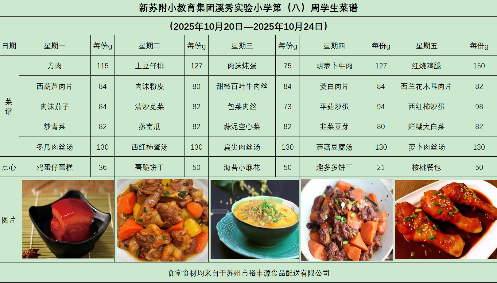 新苏附小教育集团溪秀实验小学2025-2026学年第一学期第( 八)周菜谱