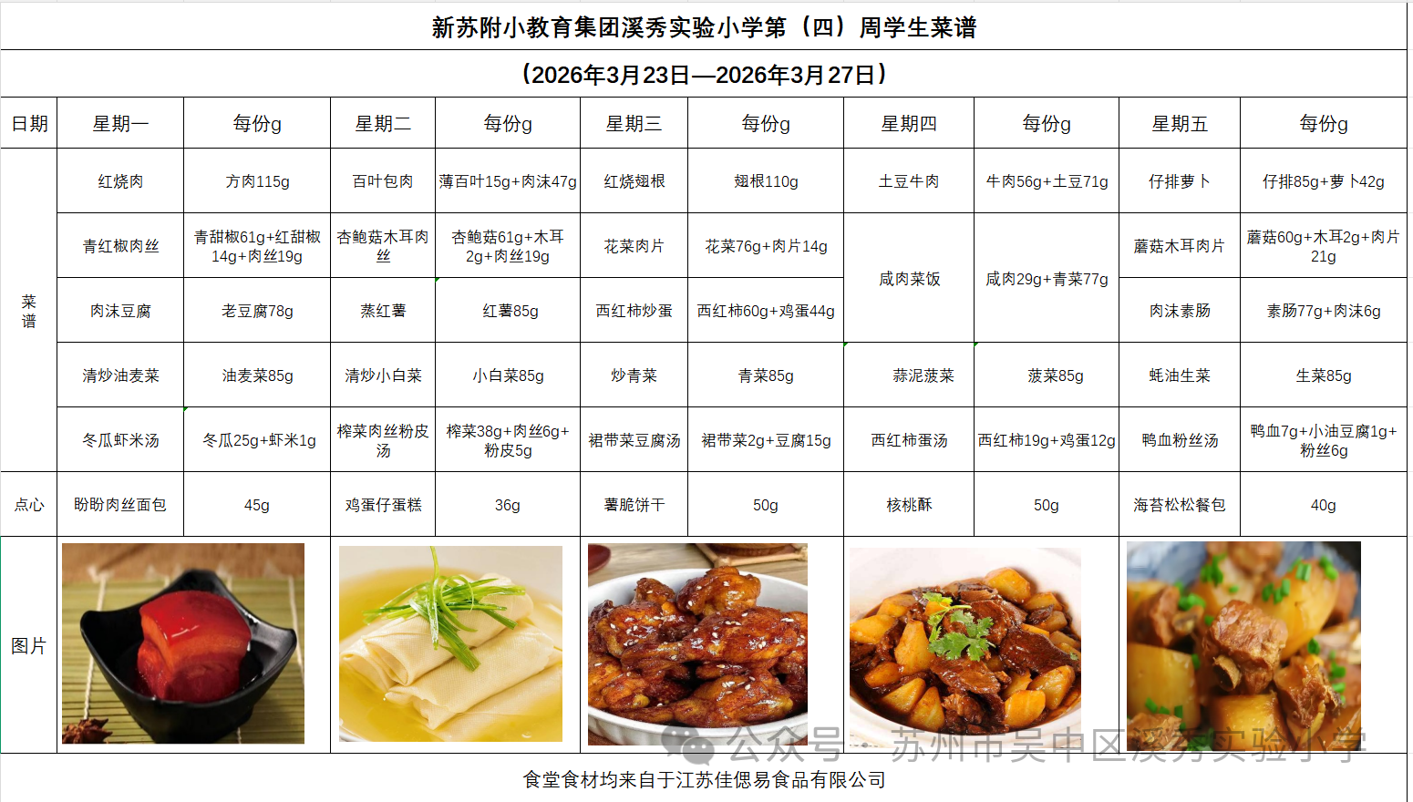 新苏附小教育集团溪秀实验小学2025-2026学年第二学期第( 四)周菜谱