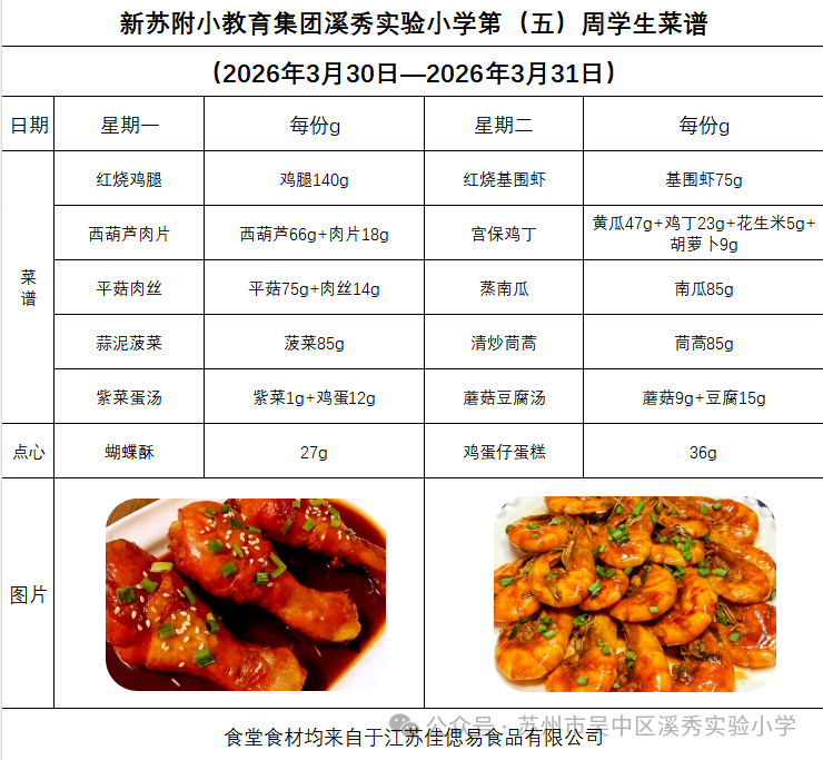 新苏附小教育集团溪秀实验小学2025-2026学年第二学期第( 五)周菜谱